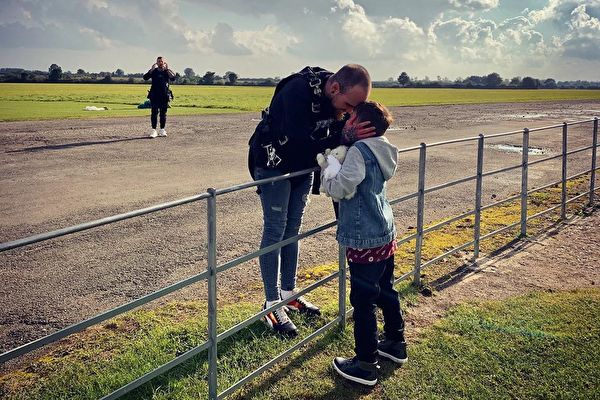 一位英国爸爸为继子跳伞的勇敢行为赢得了人们的尊重,并提高了人们对恶性疾病的认识。因为有恐高症(台称:惧高症),这名爸爸即使站在椅子上都会感到头晕。因此此次跳伞对他来说并非易事。