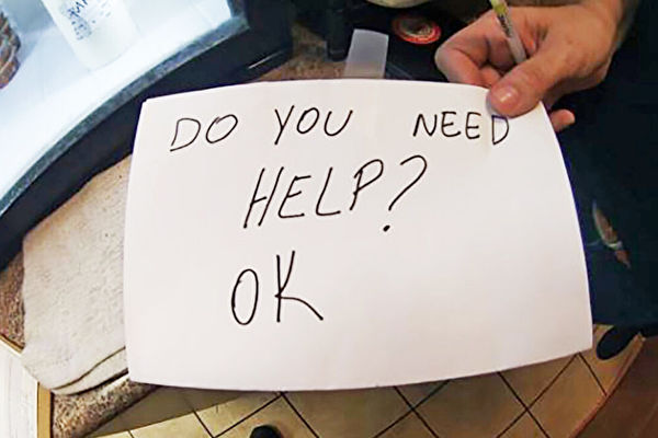 小男孩看到纸条后,刚开始是摇头。但卡瓦略知道,他是出于害怕。于是她坚持写了第二张纸条:“你需要帮助吗?”(Do you need help?),这次男孩轻轻地点了点头。
