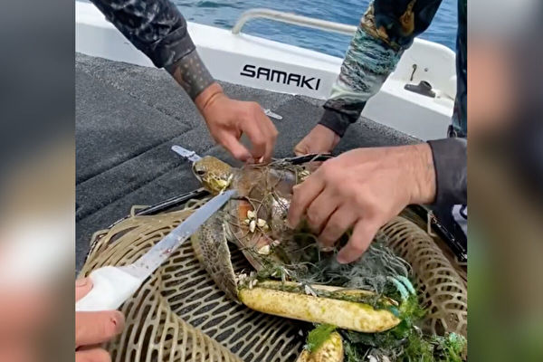 海洋废弃物已经给海洋生物的生存带来严重威胁。最近,澳洲北领地海域有一只小海龟被废弃的渔网死死缠住,但幸运的是,它遇到三位好心渔民,及时发现并将它解救出来。