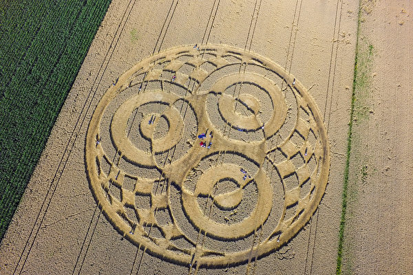 这片农田的主人在看到农作物倒下后,以为有人在夜间蓄意破坏,后来才知道这构成一个图案。