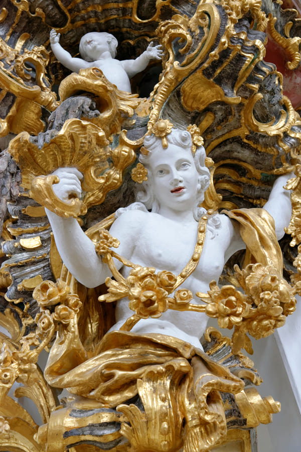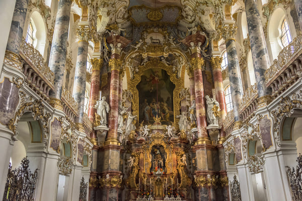 位于施泰因加登(Steingaden)维斯区(Wies)的朝圣教堂于1745年至1754年由约翰‧巴普蒂斯特‧齐默尔曼(Johann Baptist Zimmermann)和多米尼库斯‧齐默尔曼(Dominikus Zimmermann)兄弟设计建造,他们都是德国洛可可风格的画家和建筑师。