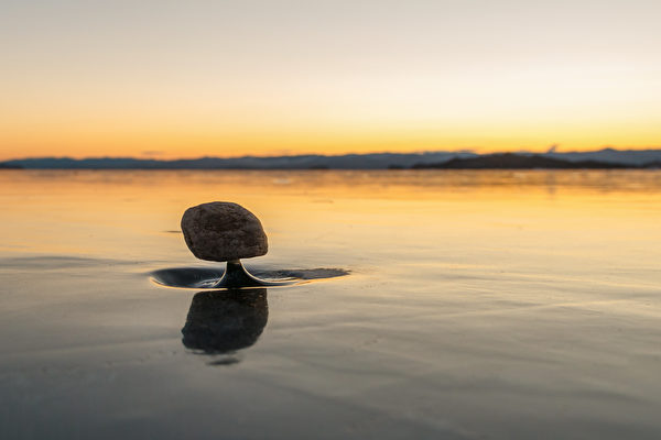 所谓“贝加尔湖禅”是鹅卵石座落在结冰湖面上方的细小冰柱上,而且保持平衡的自然现象。这些石头距离结冰湖面只有几公分的距离,看起来摇摇欲坠,却又不会掉下来。