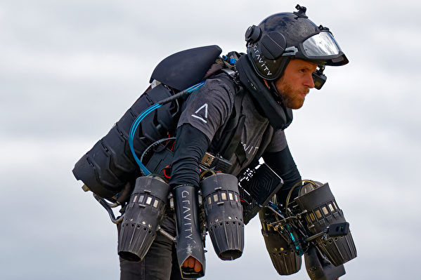 这种重力喷气式飞行服主要推力在背上,另外手上也有4具小型喷射引擎做为辅助与方向调整。据悉,每件套装价值约34万英镑(约合43万美元)。
