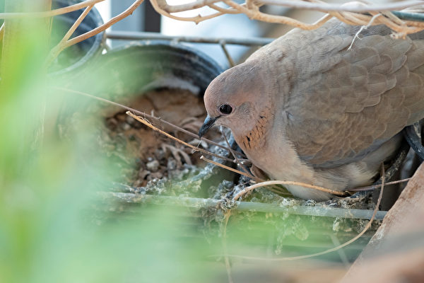 有一对据信是棕斑鸠(laughing dove)的小鸟在他爱车的挡风玻璃前筑起“爱的小窝”,母鸟还下了两颗蛋。