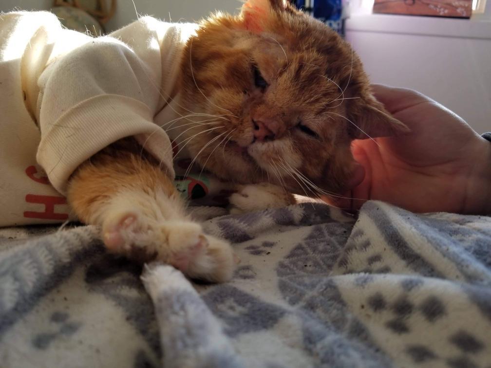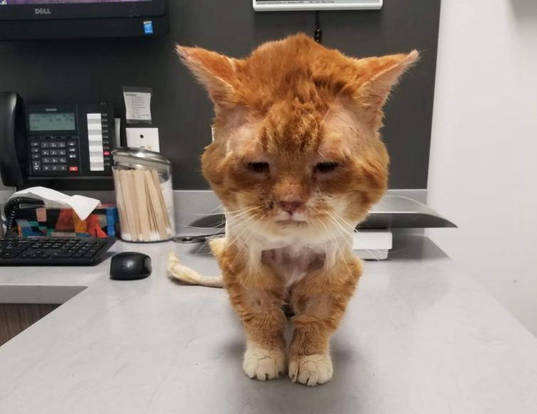 虽然大橘不属于救助范围,但它看上去病的很严重也不能不管。于是拍照向组织管理人玛丽·西玛德(Marie Simard)求助。听到猫咪的消息后,西玛德也十分心痛,她立即和杰勒一起带猫咪去看了兽医。
