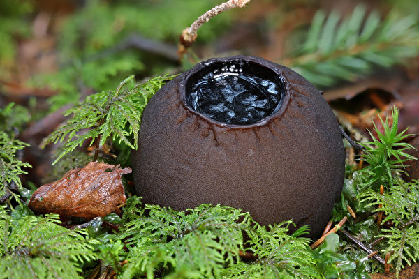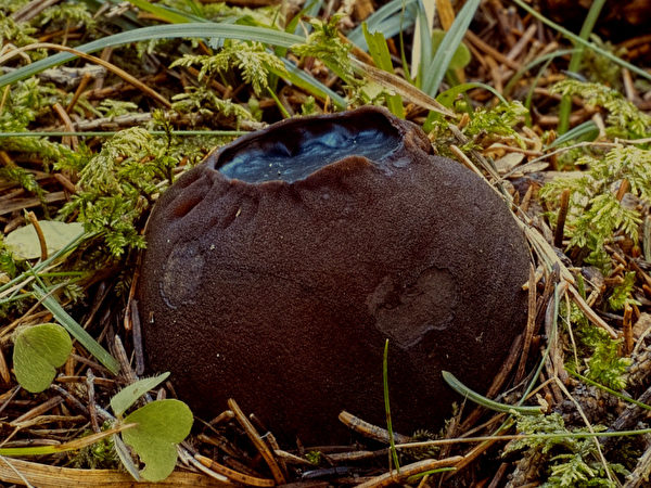 据英文媒体报导,此次发现地是伍德斯托克(Woodstock)北部的格拉斯维尔(Glassville)。这种蘑菇拉丁学名为Sarcosoma globosum,但它有一个很形象的名称叫“女巫釜”,因为它的样子看上去真的很像动漫中女巫使用的大锅,呈深色圆形状,顶部带有略小的开口,外皮看上去还有哑光效果,里面充满了某种发亮的粘稠状物质。