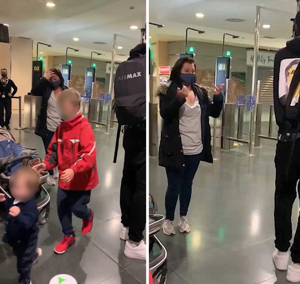 一位同行的乘客及时捕捉了这一事件,随后分享到社交媒体。影片显示,这位母亲看上去不知所措,因为她当时还带着三个孩子,包括一对9岁的双胞胎,还一个仅1岁的婴儿。她的孩子围着她不断转圈跑,她焦躁不安地用手直挠头。
