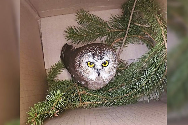 卡利许表示,纽约当地工人试图展开圣诞树枝时,在树根一带发现了这只小猫头鹰,当时它紧贴在树根上,大家还以为它受了伤,因此致电野生动物中心求助。