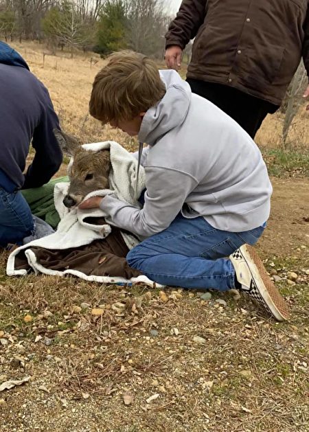 一起参加救援的科尔本·斯图里在脸书上写道,他们把这只小鹿送到了附近的名叫“鱼溪”的野外,希望把它放回到大自然。但这只小鹿还不能站起来。所以他们又将它包裹好,用皮卡车将它送到了汉密尔顿的双H农场(Double H Farms)。这个农场收养一些动物以帮助它们恢复健康。