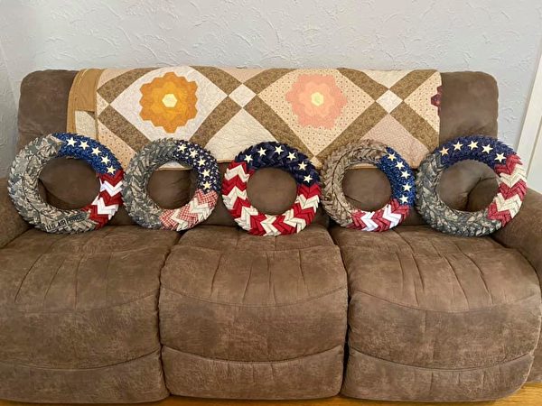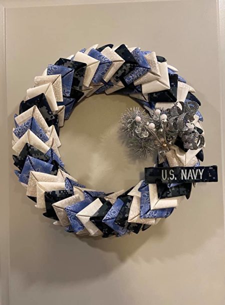 美国空军改穿新制服后,德克萨斯州圣安东尼奥市(San Antonio,Texas)的一名空军中士舍不得原来旧的空军制服,于是她以旧军服为材料,手工做成了一个个美丽的爱国花环。