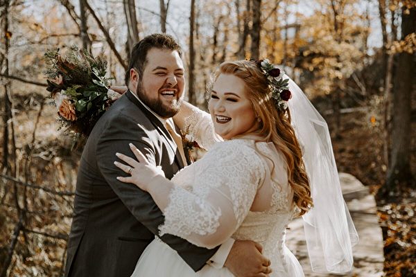 来自港口城市德卢斯(Duluth)的25岁的斯蒂芬妮(Stephanie)和29岁的布兰登‧恩格布洛姆(Brandon Engblom)在宣誓结婚时都超过300磅(约136公斤)。