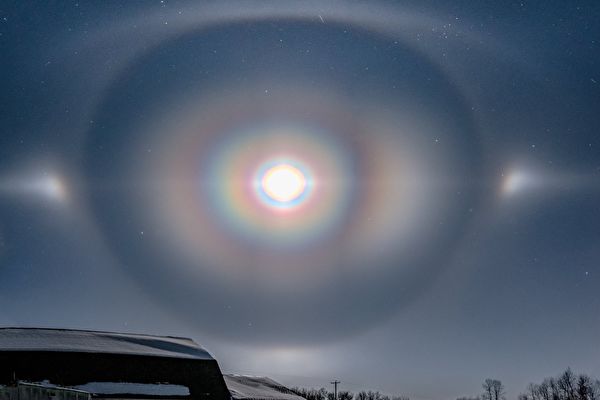 大自然总是神奇地创造出一些令人叹为观止的景观,一位意大利摄影师近日意外拍摄到极为罕见的“月华”奇景,月亮被一圈彩虹般的光圈围绕着,照片分享到网上后吸引众多网友转发,纷纷大赞“太美了!”