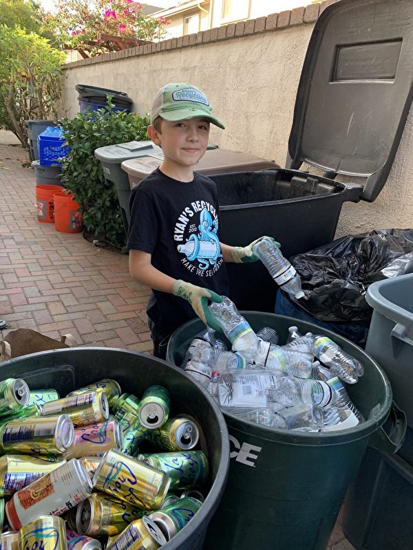 瑞安说,自己很幸运,因为他爸爸达米昂(Damion)每周驾车去加州橙县(Orange County)会见客户,带回那些本来要在垃圾填埋场放上几十年的瓶瓶罐罐。他的主要目标是防止这些可回收的废物进入海洋、危害环境。