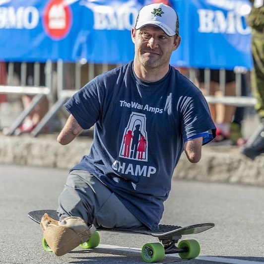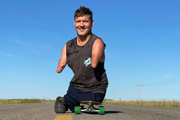 几年前,克里斯把双腿的假肢换成了使用长的滑板。“这样我行动起来更快、更远、更有效率,”他对英文媒体表示,“这也让我跑马拉松成为可能。”