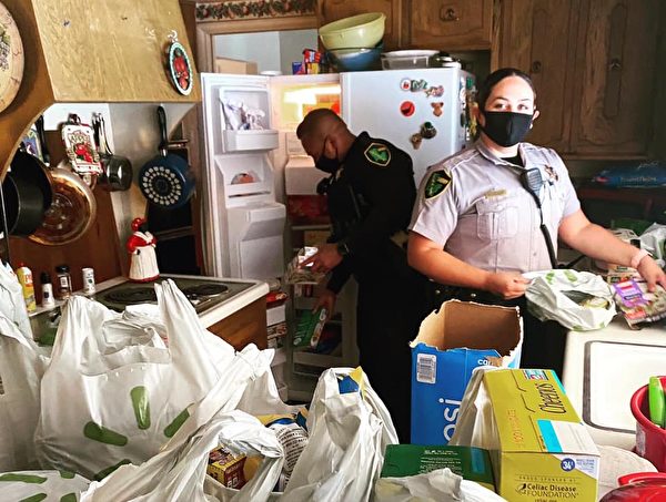 该部门脸书页面上发布的照片显示,警官们甚至还帮助老人把食物摆放到冰箱里。