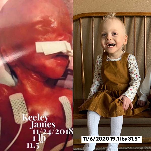 出生时,她们的体重分别只有15.8盎司(约448克)和1磅1.3盎司(约490克)。她们在爱荷华大学斯特德家庭儿童医院的新生儿重症监护病房(NICU)度过了出生后的前四个月,然后才回家。