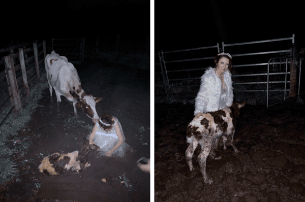 虽然白色的婚纱已脏到不行,甚至可能无法修复,但杰莎认为这是一次非常难忘的经历,只要母牛和小牛崽平安,一切都是值得的。“当有一头母牛需要帮助接生的时候,你会放下一切去帮忙”,她说。