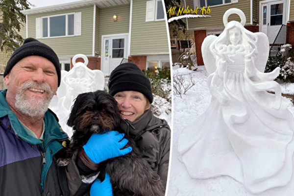 “对很多人来说,过去的一年是很艰难的。”为了纪念这一不寻常的历程,来自美国东海岸的两位雕塑家创作了一个象征希望和欢乐的作品。他们一起在房前用雪塑造了一个真人般大小的天使,而这个象征美丽的雪天使却深深地打动了人们的心。
