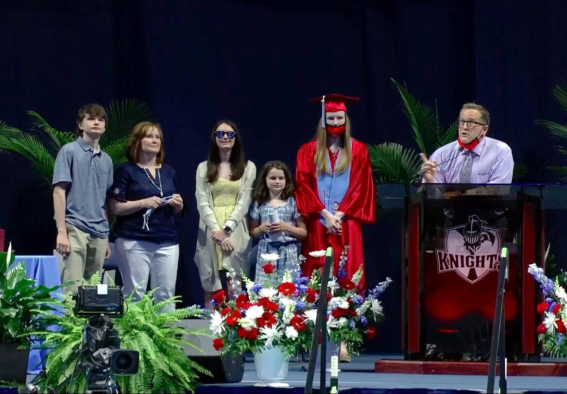 她的毕业典礼于5月16日在辛辛那提泽维尔‧辛塔斯中心(Xaviers Cintas Center)举行。但让她意想不到的是,她的父亲已经秘密回国并和金斯高中(Kings High School)共同筹划好,准备给她一个惊喜。