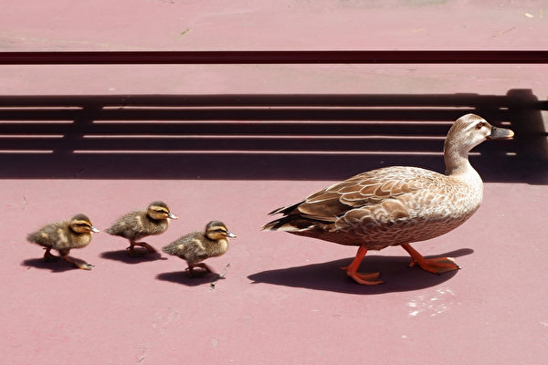 小鸭子们渐渐长大,一年一度的穿行仪式即将开始。谢泼德说,鸭妈妈在大门口徘徊,它们想去池塘了。