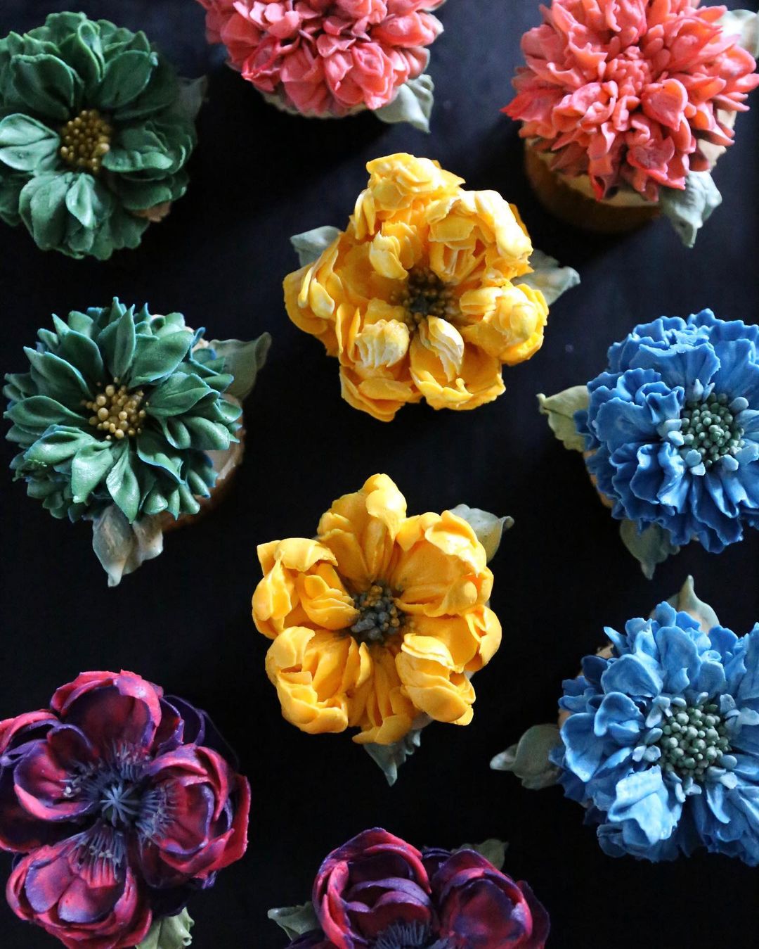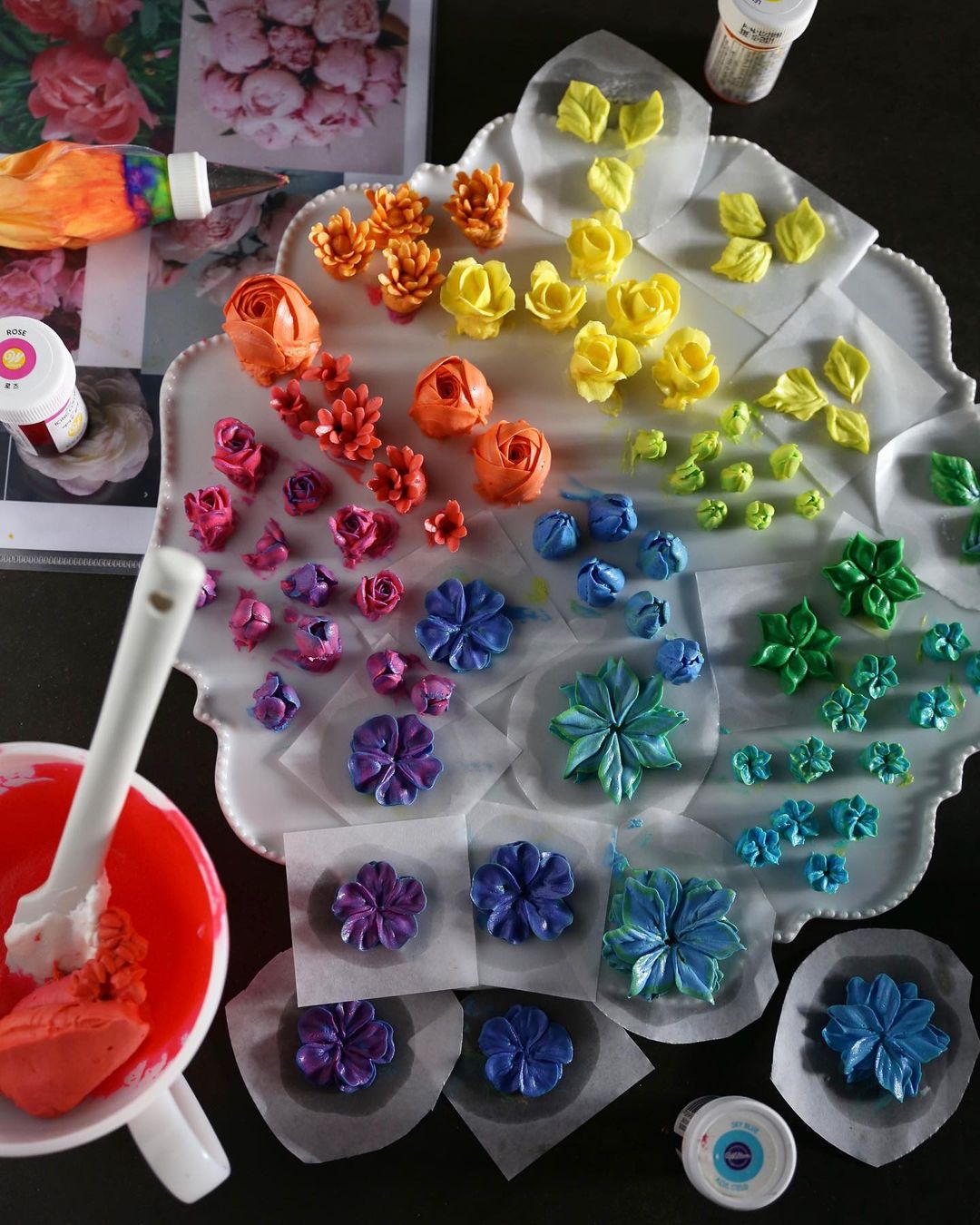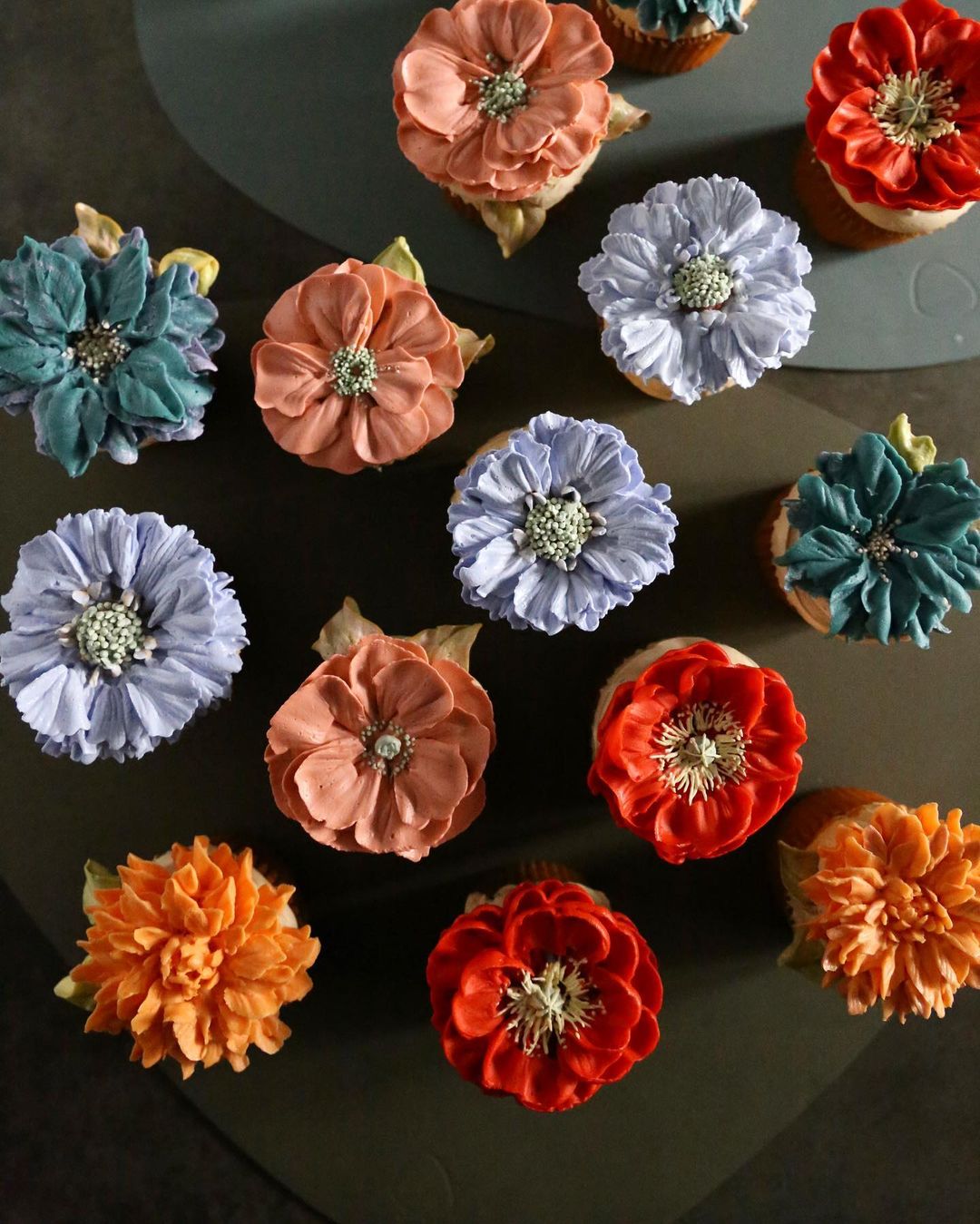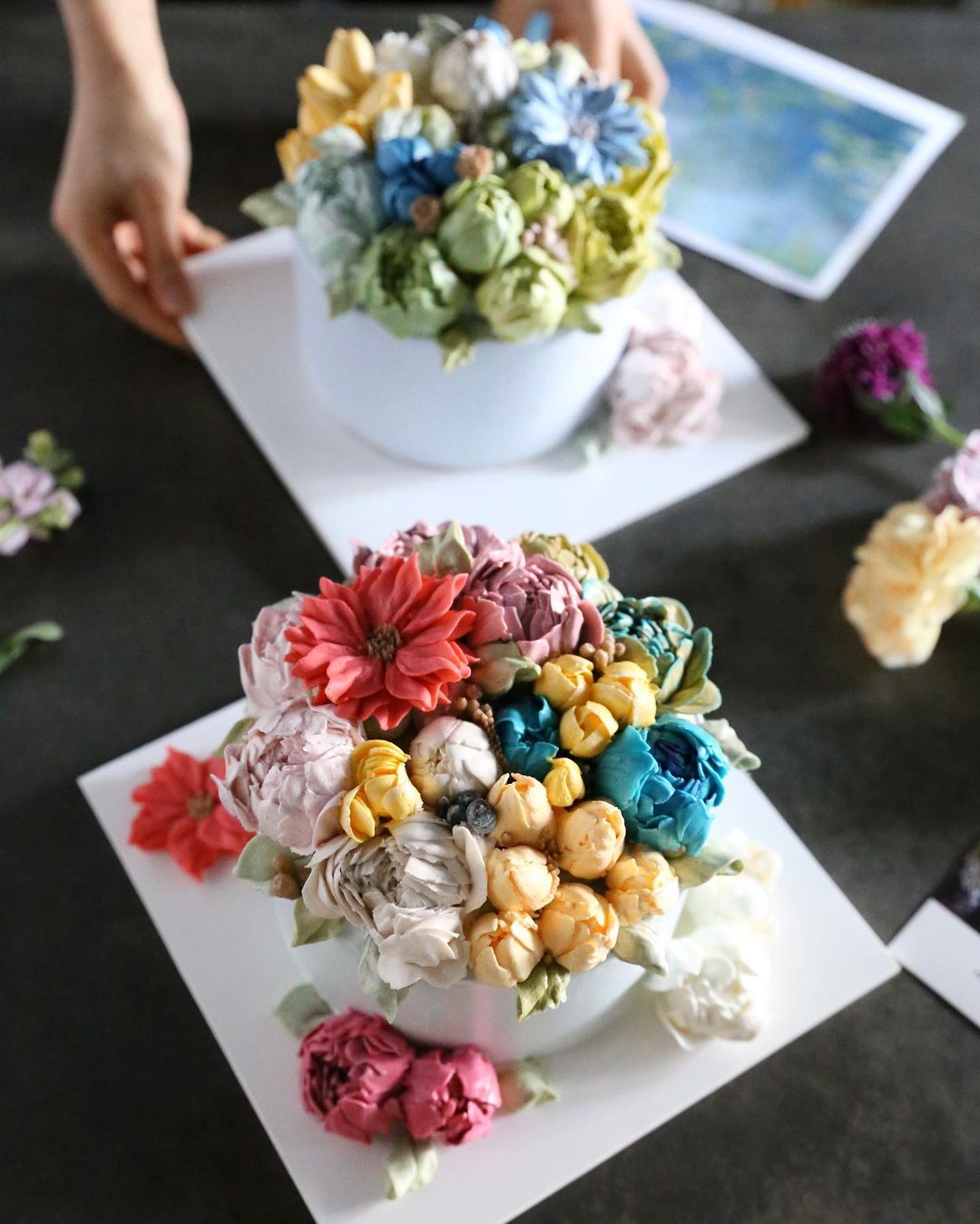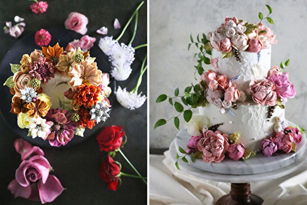 有时她也会利用真的鲜花点缀糕点,乍看之下,很多人都会因为太过逼真而分不清究竟哪一朵才是真实的,带给人们视觉上的无限疗愈。