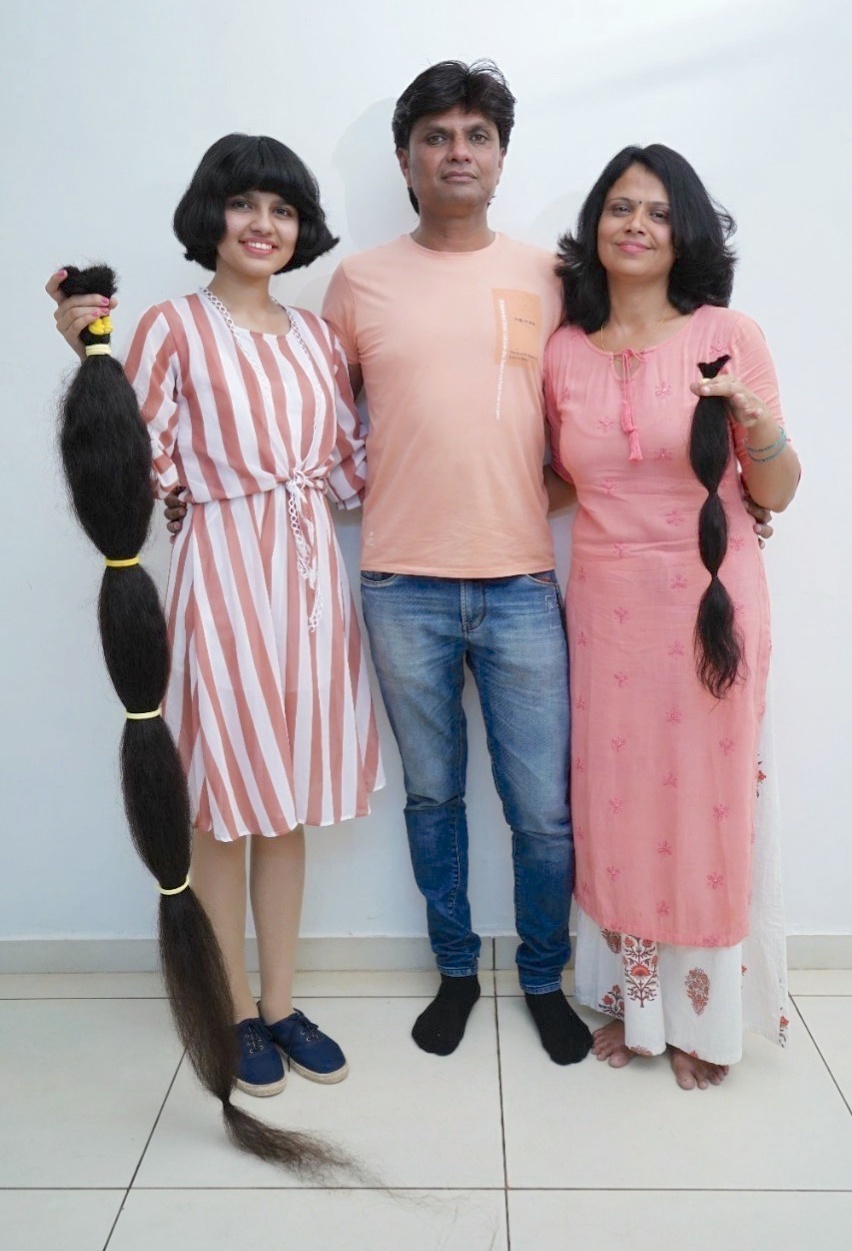 为了支持女儿的善举,她的母亲也剪下自己的头发并将其捐给慈善机构。