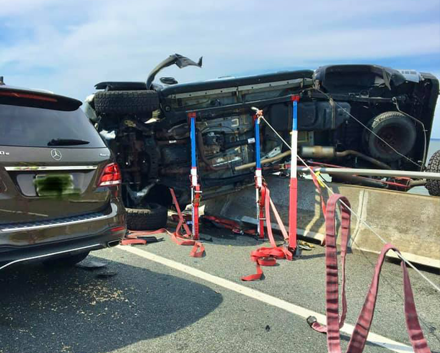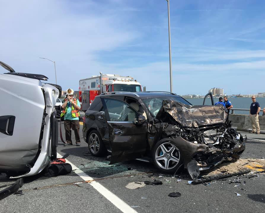 根据大洋城的一份新闻稿,这起事故于5月2日下午近3点发生在连接大洋城和伍斯特县其它地区的90号公路大桥上,当时有5辆汽车发生追撞事故,其中一辆货车冲上桥边护栏险些冲入海中,横跨在护栏上摇摇欲坠,而车里一名23个月大的小女孩,连同其汽车座椅被甩出车外,坠入桥下的阿萨女人湾(Assawoman Bay)。