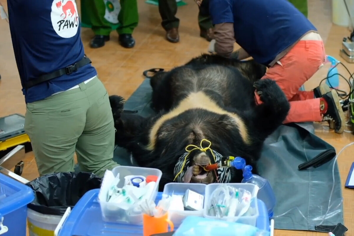 获救后,兽医给两只熊注射镇定剂,并进行了医学检查,发现由于长年被针筒反复刺进胆囊提取胆汁,两只熊均患有胆囊相关疾病,“Xuan”还有超重及肝病,并因多次尝试咬铁笼逃脱,导致多颗牙齿掉落。