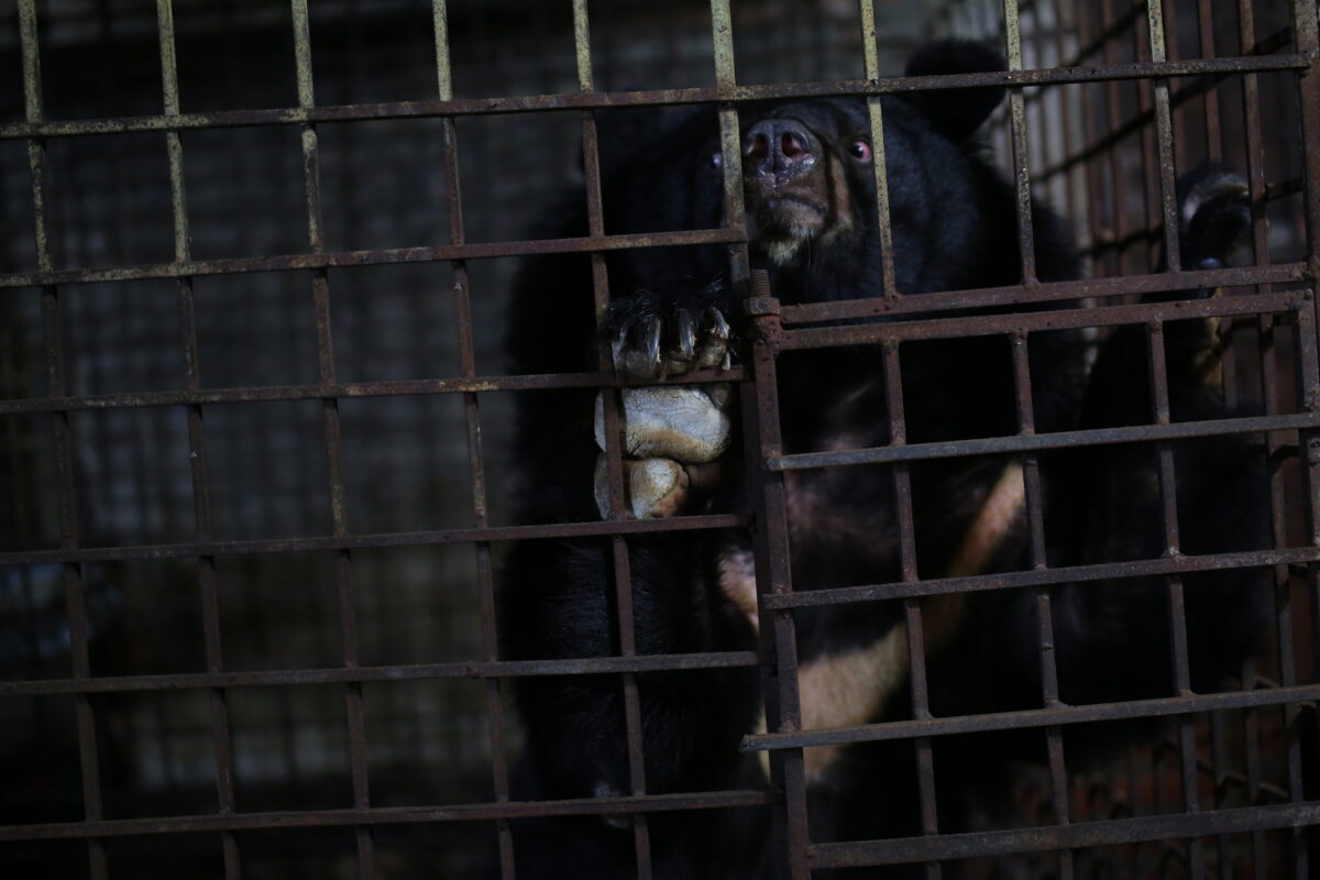 Four Paws在越南西北部山萝省(Son La province)发现了这两只黑熊,它们的生活环境极其恶劣。救援人员指出,它们的处境是他们见过的最糟糕的情况,两只熊被关在生锈且肮脏的铁笼里,地下室一片漆黑,几乎没有通风装置,它们很难呼吸到新鲜空气,终年靠食用腐烂的蔬果勉强维持生命。