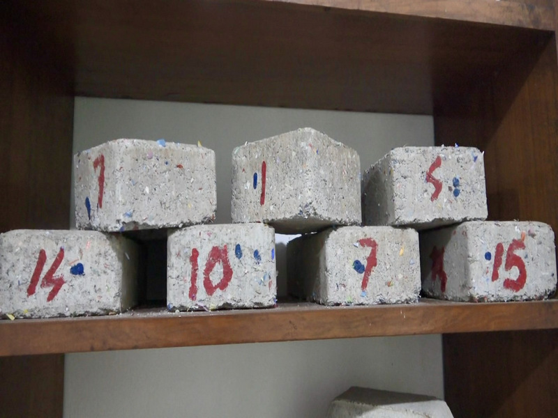 刘丽菲和诺维达花18个月才找到黄金比例,研发出耐压强度每平方厘米250公斤的铺路砖,让这些废料再循环使用,她们生产的路砖目前已使用在停车场、公园等地方。