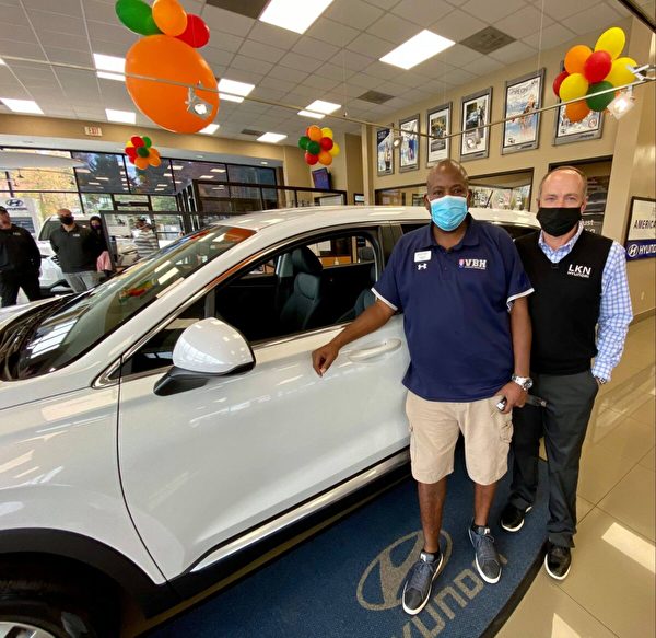 德韦恩‧威尔斯(Dwayne Wells)在退伍军人纪念日这一天,陪同他的同事到本地的诺曼湖现代汽车车行(Lake Norman Hyundai)参加一个庆祝活动。然而,完全出乎意料的是,活动主持人宣布他荣获现代汽车家乡英雄(Hyundai Hometown Hero)称号和一辆全新现代胜塔菲(Santa Fe)轿车。