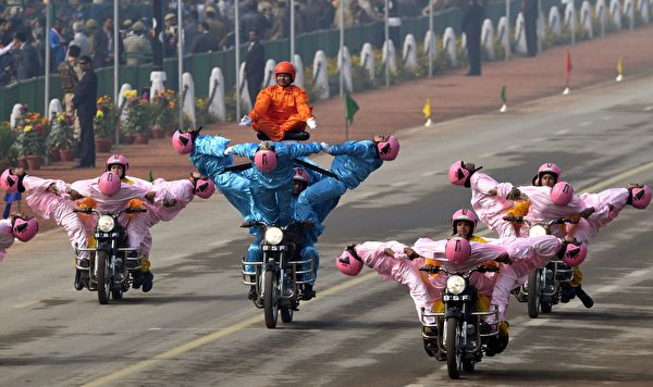 印度在1950年1月26日建立共和国,所以将1月26日定为共和国日(Republic Day)。每年到了这一天,该国会举行阅兵以示庆祝,而其阅兵素以华丽的花车和夸张的特技表演闻名,尤其是摩托车叠罗汉,简直就像马戏团的表演节目。
