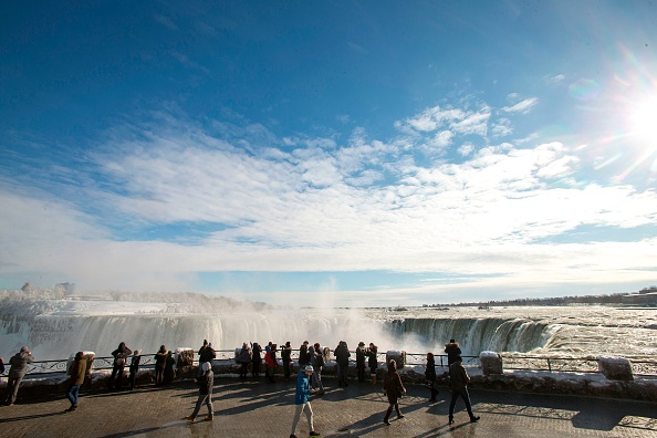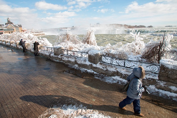 2018年1月3日,尼亚加拉大瀑布出现冰封奇观,吸引民众冒着严寒前来拍摄美景。(AFP PHOTO / Geoff Robins)