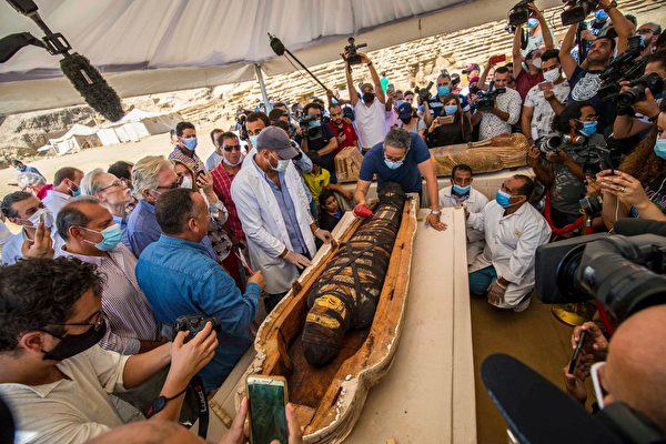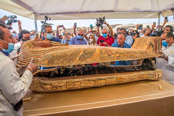 埃及考古队9月初在开罗以南的萨卡拉一处11米深的墓穴中,发现从未遭破坏的墓穴,59具自下葬后再未被打开的棺材被挖掘出来,其外表的彩绘依然鲜艳,成为埃及几十年来最重大的考古成果之一。