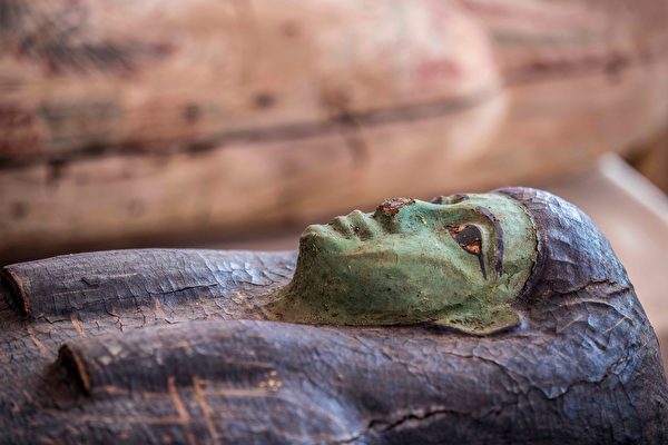 据当地媒体报导,上周六(10月3日),埃及旅游和文物部召开记者会展示这次考古的惊人发现,并现场开启两具装饰华丽的古棺,棺木内刻有色彩鲜艳的象形文字,用葬布包裹的木乃伊也保存得非常完好。