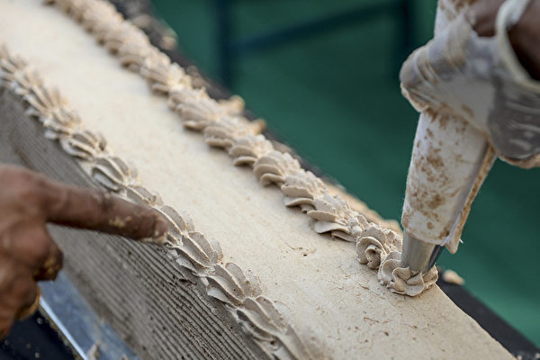 据法新社报导,大约1,500名烘焙师傅与厨师聚集在印度南部的喀拉拉邦(Kerala),他们头戴传统的白色帽子,花费4个小时的时间,将以12,000公斤重的面粉和糖做成的无数条蛋糕拼接在一起,再涂上巧克力和鲜奶油进行装饰,最终完成这条特大号的香草蛋糕。