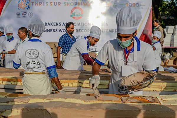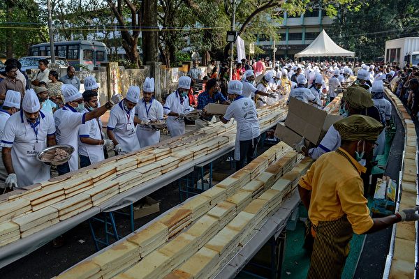 印度上千名烘焙师傅与厨师在周三(1月15日)联手做出一条6.5公里长的蛋糕,号称全世界最长。如经吉尼斯世界纪录(Guinness World Records)证实,这将打破中国在2018年创下的这项纪录。