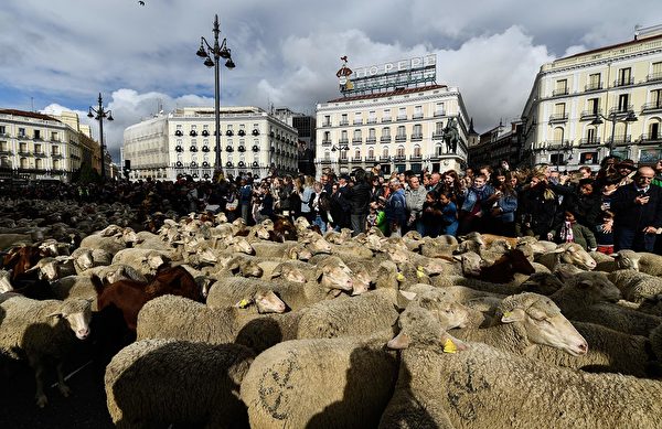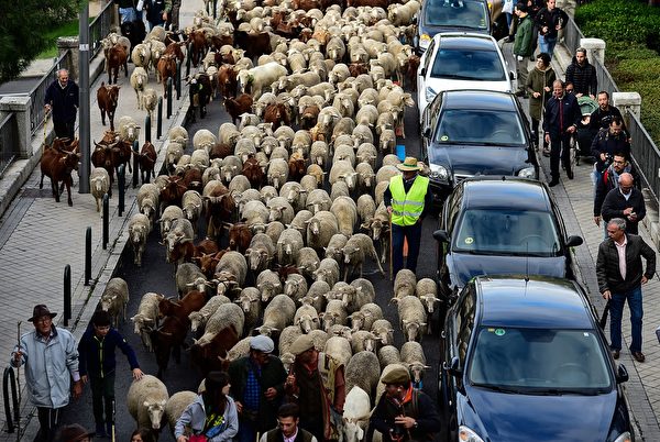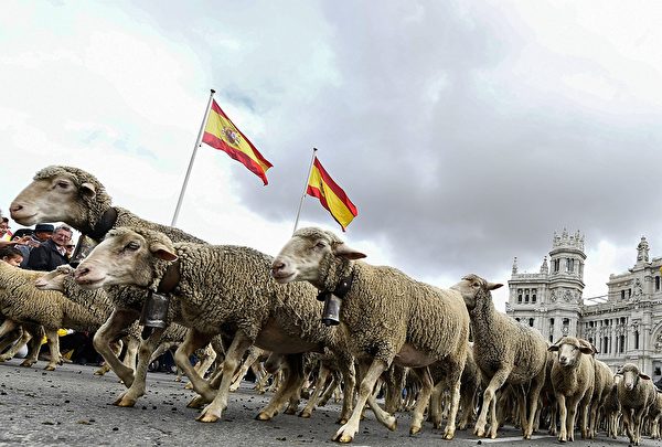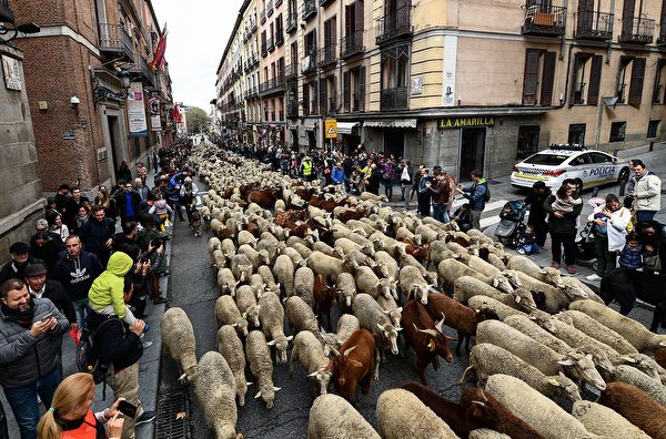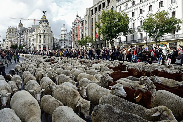 2019年10月20日,超过2000只绵羊穿越西班牙马德里的市区,形成绵羊逛街的奇景。(OSCAR DEL POZO/AFP via Getty Images)2019年10月20日,超过2000只绵羊穿越西班牙马德里的市区,形成绵羊逛街的奇景。(OSCAR DEL POZO/AFP via Getty Images)2019年10月20日,超过2千只绵羊穿越西班牙马德里的市区,形成绵羊逛街的奇景。(OSCAR DEL POZO/AFP via Getty Images)