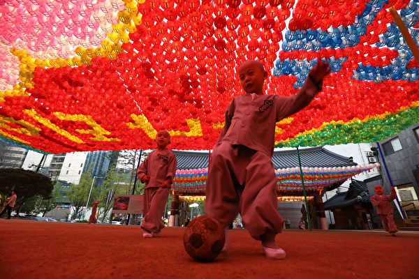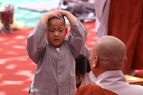 韩国首尔的曹溪寺于4月22日为一群儿童举行剃度及短期出家受戒仪式。这些小和尚在剃度之后变成光头,虽然外观有所不同,但还是一样俏皮可爱。