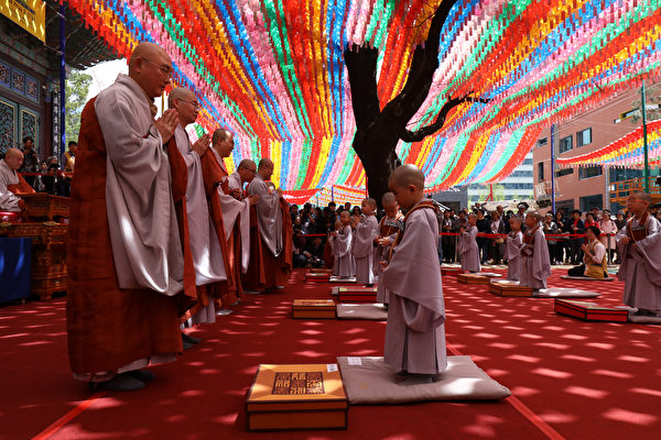 2019年4月22日,这群小和尚参加仪式。(Chung Sung-Jun/Getty Images)
