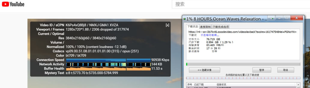 一边下载油管视频,一边测试油管速度。