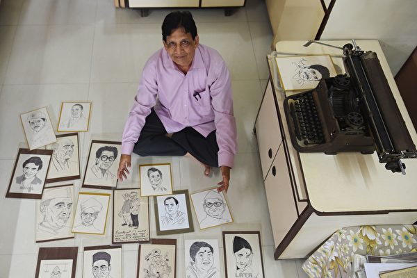 有别于一般人使用画笔或电脑绘图,印度孟买男子宾德(Chandrakant Bhide)在过去半个世纪以来,一直以旧式打字机作画,而且只用一根手指头输入按键。他的作品包括政治人物、电影明星、运动员等名人的肖像,看起来维妙维肖。