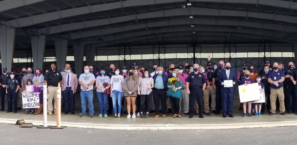 11月,塔尔萨警察局欢迎他们久违的警官重返轻型的工作岗位,他们在脸书上发文表示“我们很高兴见到他” 。