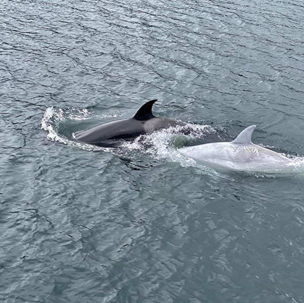 伴随着鳀游克的还有另外两只色素正常的虎鲸:它的母亲和它的祖母。