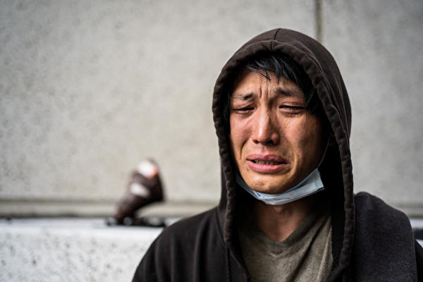 故事始于洛杉矶亚裔摄影师约翰‧黄(John Hwang)拍下的一张令人心碎的照片。照片显示,一位年轻男士把一次性口罩挂在下巴位置,头上戴着棕色帽衫,面部表情传递着满满的痛苦和无助。