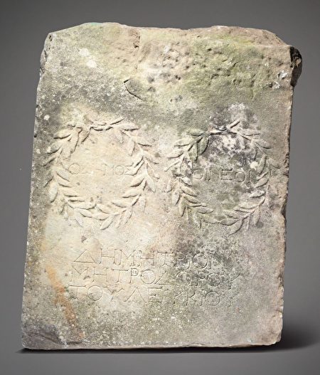 铭文经翻译后写着:“人民‘和’年轻人‘荣耀’留基罗斯(Λεύκιος)的‘儿子’米特罗多罗斯(Μητρόδωρος)的‘儿子’迪米特里斯(Δημήτριος)。