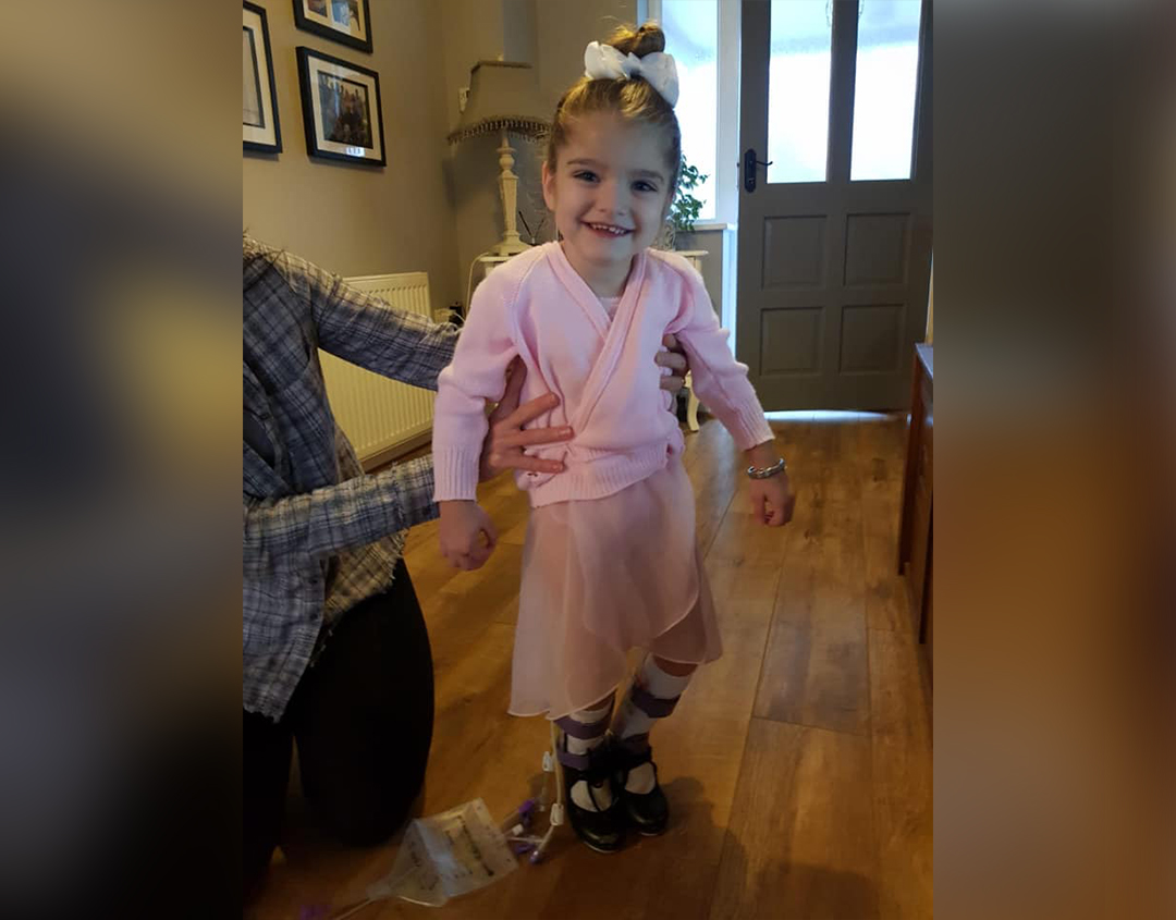 英国一名4岁女童因是早产婴而患上脑瘫,几年来靠轮椅活动,她的母亲为了治好爱女,在网上众筹医药费,没料到仅24小时后便有神秘好心人捐出7.5万英镑,支付女童所有医疗费用,希望实现她走路的心愿。