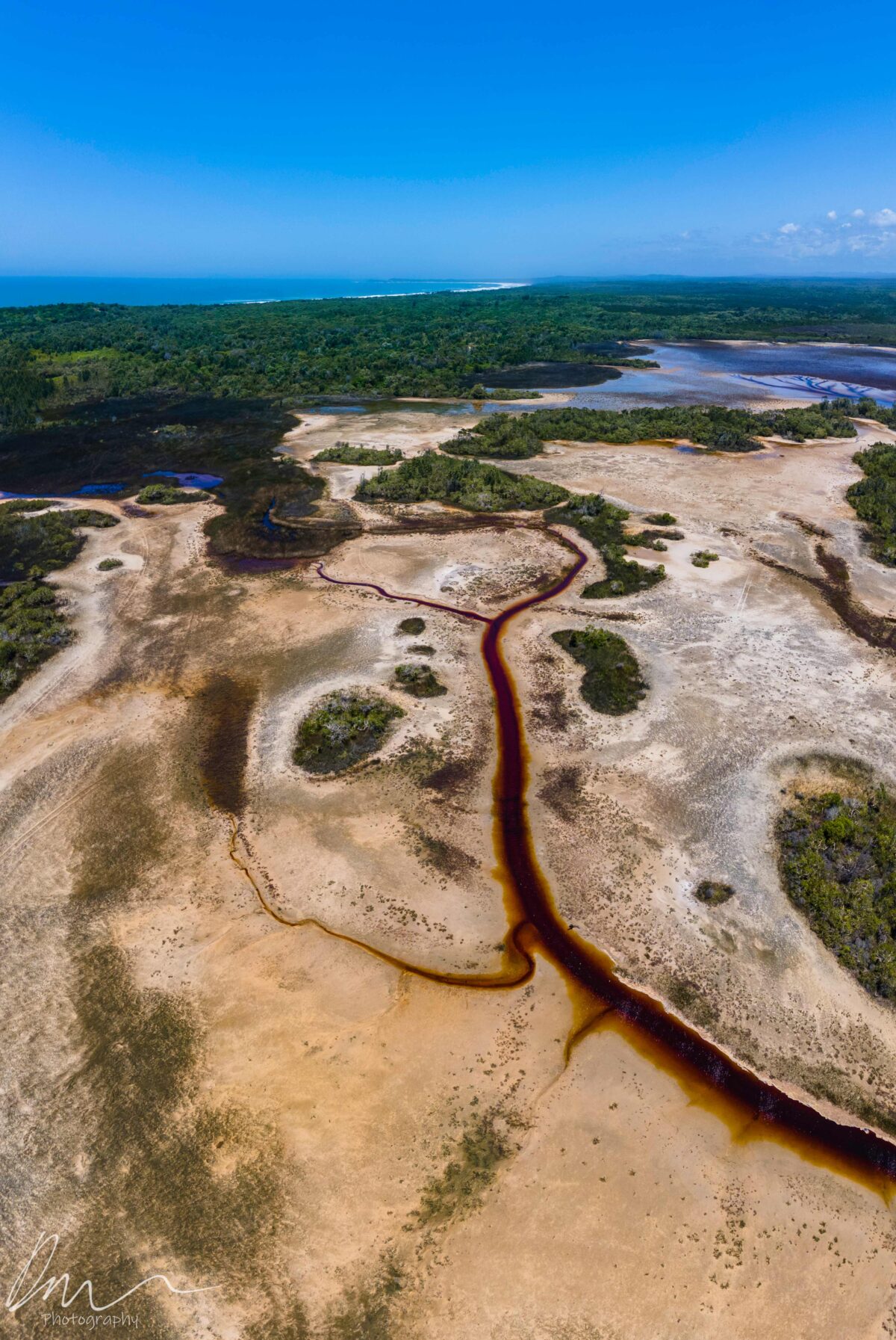 莫洛尼解释说,卡科拉湖连接大海的河口长满了茶树,湖水被茶树油浸泡过,因此呈现了棕色,向外流出的湖水创造了这幅今人惊叹的自然杰作。