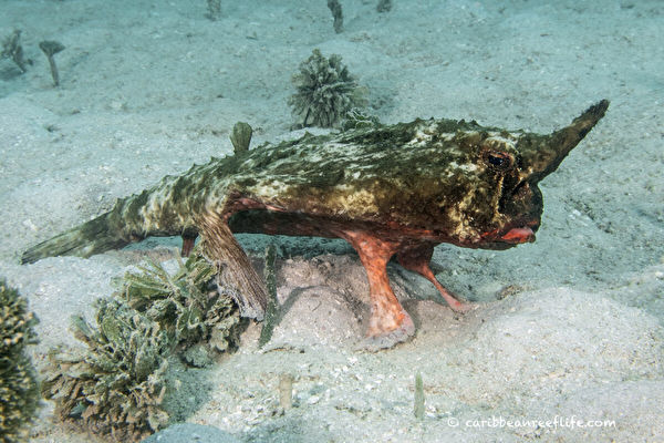 前不久,一位海洋专家兼摄影师在加勒比海一个岛屿附近的海底捕捉到了一种奇特的海洋生物短鼻蝙蝠鱼(shortnose batfish),其长相不雅,皮肤粗糙,用鳍当腿在海底漫步爬行,是为数不多的可以用鳍行走的鱼类之一。
