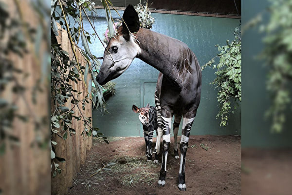 当注意到Oni要临产时,动物园管理员开始通过视频监视待产妈妈。经过12小时的夜守,终于迎来了小霍加狓的顺利诞生。